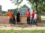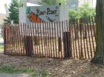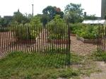 The students of Douglass High School are beginning to make creative contributions to the Root Riot Harambee gardens. The signage was designed by student DeAngelo Mills. The “Peace” Flags, which signify a desire for peace in our community, adorn the fence.