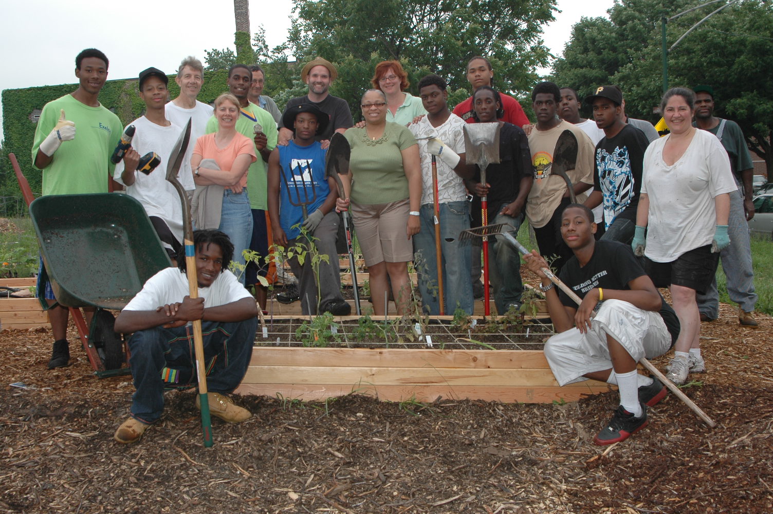 . | ![]() Root-Riot Harambee is one garden in the Root-Riot Network. The strength of the project comes from the surrounding institutions who have all engaged in making the 25+ year vacant lot into an amazing community area.The land, loaned from neighboring private land owner, it is surrounded by a Senior Home, CPS Douglass Academy High School, Chicago Fire House, St Martin’s Episcopal Church, St John’s, as well as near the Austin Town hall, Chicago Public Library, and Kay Elementary school.In partnership with Douglass Academy, and Youth Guidance, and the others we work in partnership with local businesses and experts to create positive, hands-on opportunities for people to grow their own food in their own communities while encouraging the development of micro-business to strengthen the community. Our hope is that by doing so we deepen people’s sense of belonging in their community and strengthen the resilience of our society as a whole. ![]() |